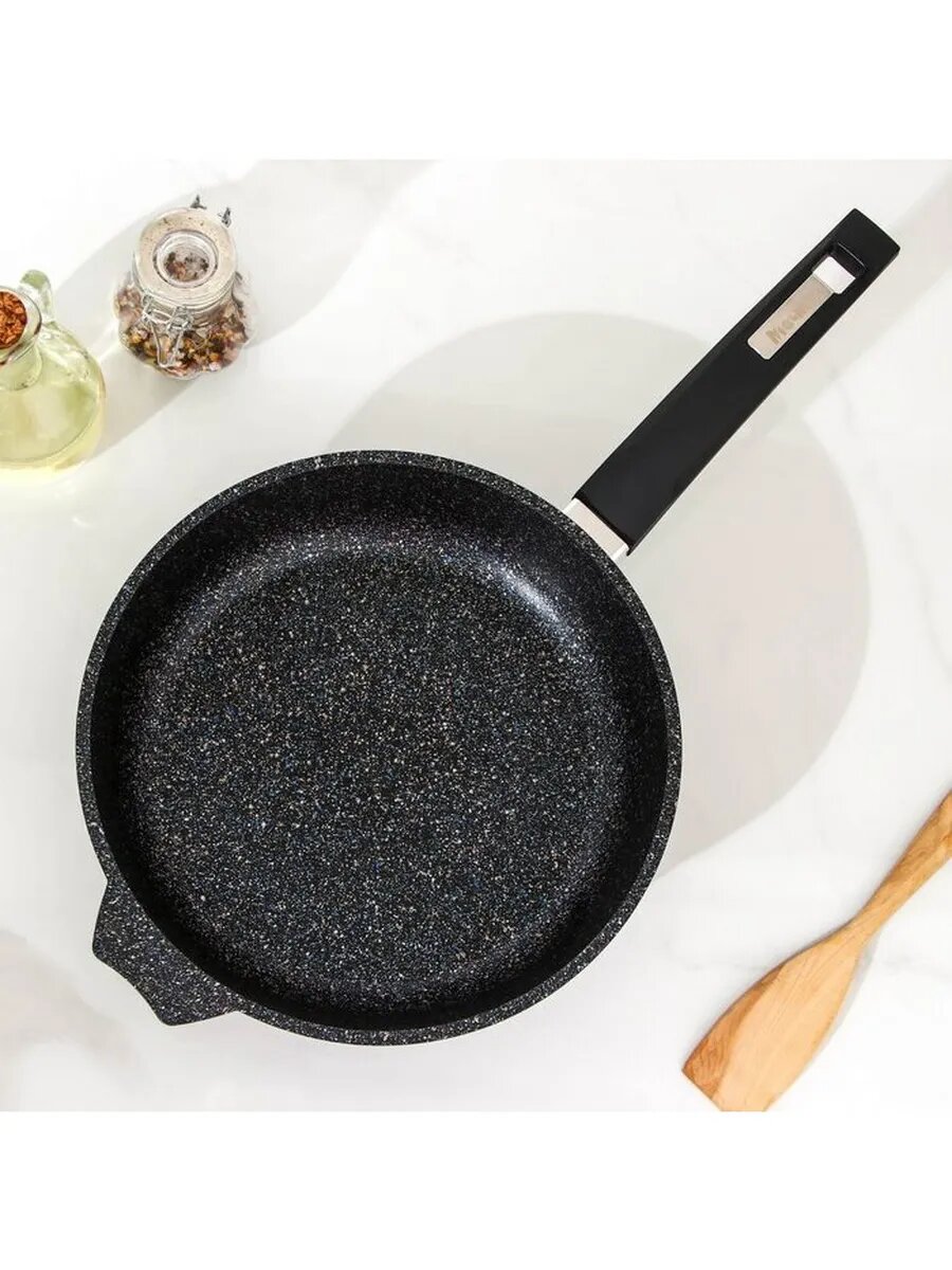 Сковорода Мечта 28см Гранит с антипригарным покрытием со съемной ручкой и крышкой с028806