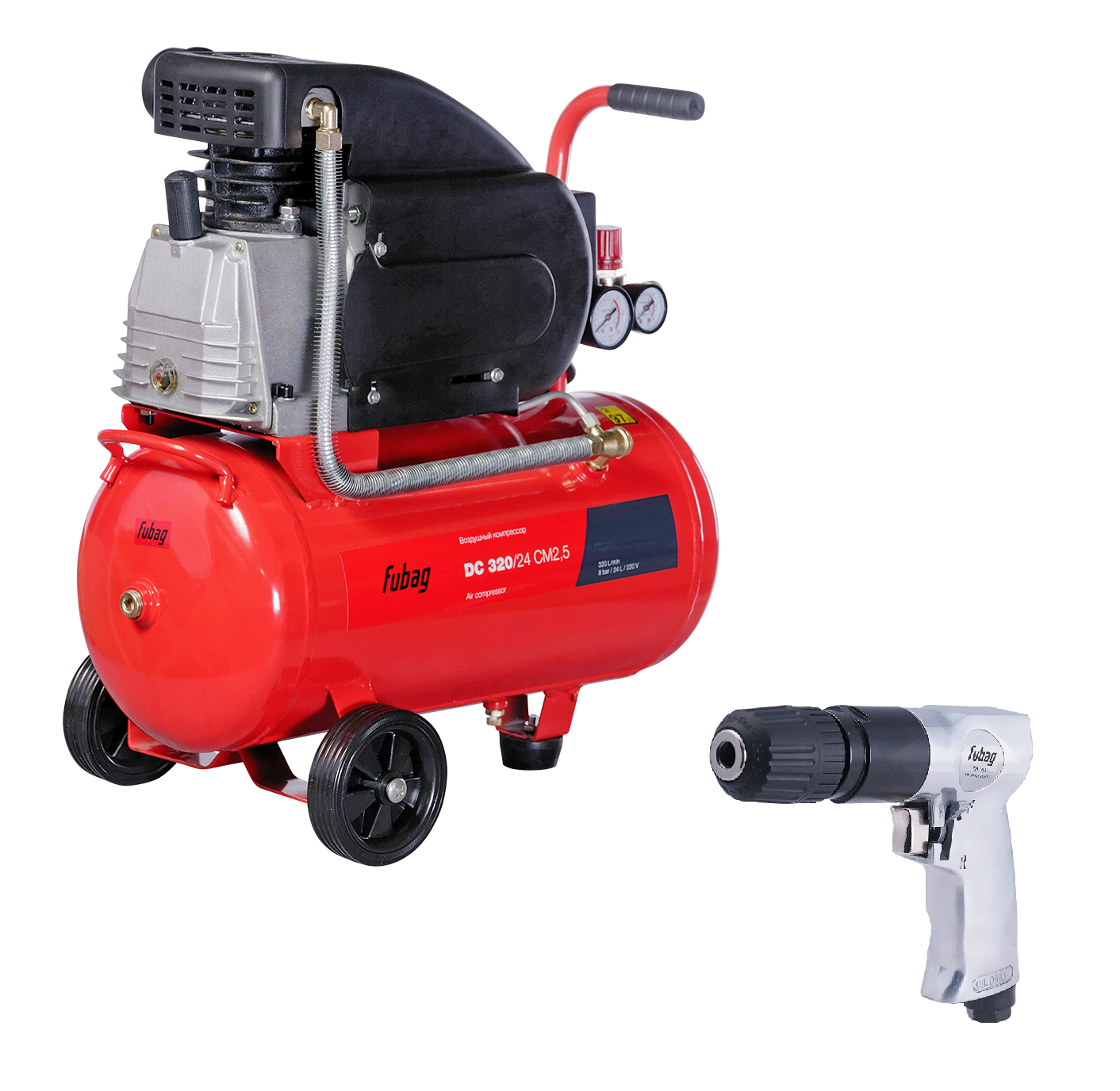 Набор FUBAG: Масляный поршневой компрессор DC 320/24 CM2.5 + Пневмодрель DR1800 информация: