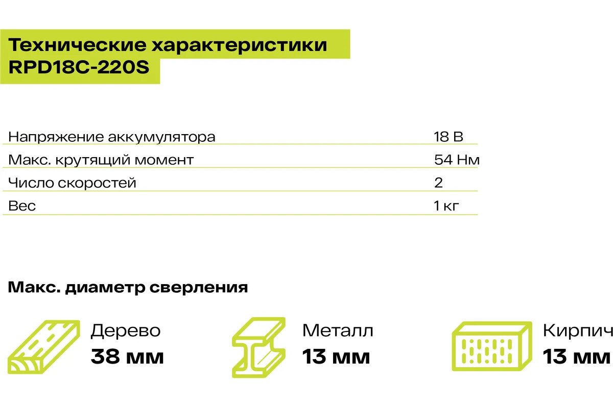 Ryobi ONE+ Дрель-шуруповерт ударная бесщеточная RPD18C-220S 5133004982 информация:
