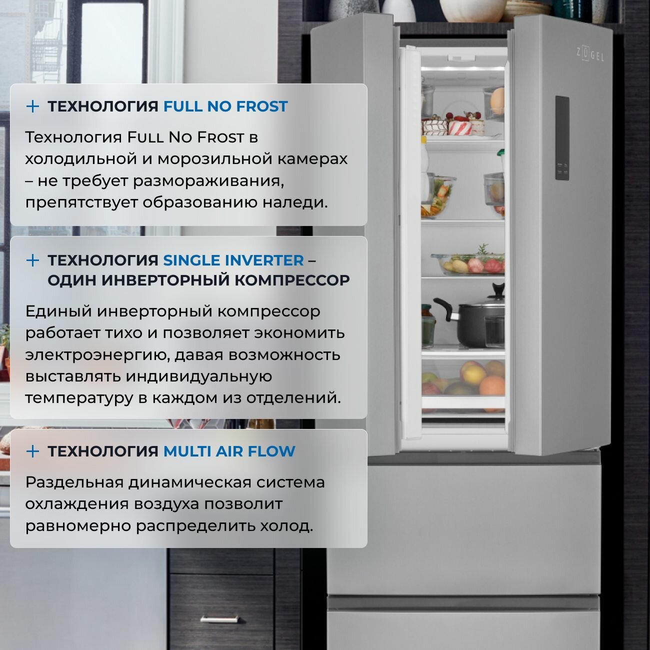 Холодильник комбинированный French Door ZUGEL ZRFD361X, нерж. сталь информация:
