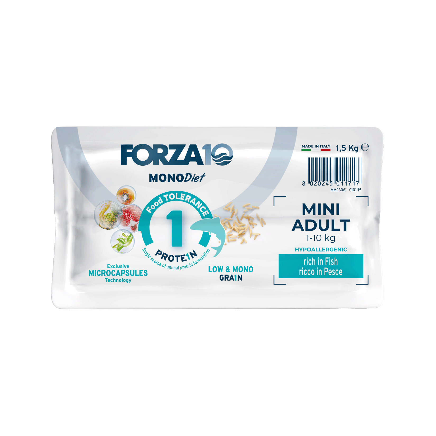 FORZA10 DOG MINI DIET монобелковый для взрослых собак маленьких пород при аллергии с рыбой (1,5 кг)