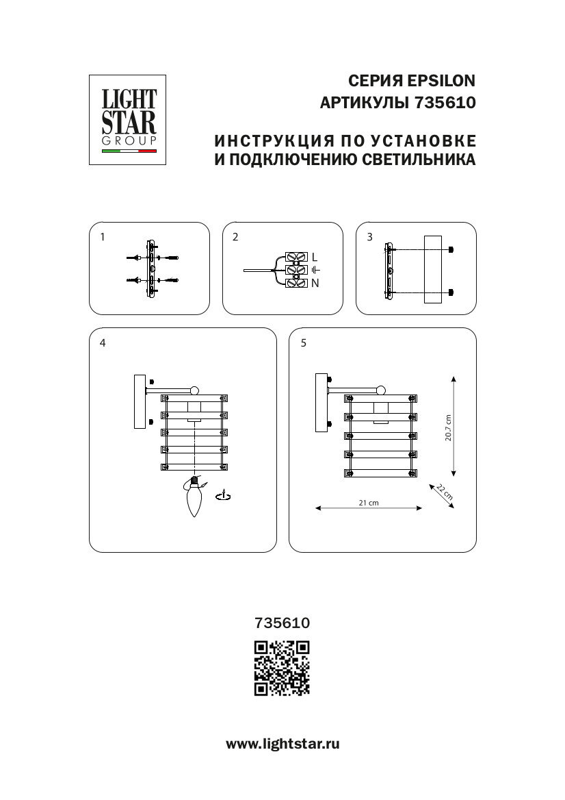 Бра Lightstar EPSILON (SB1509/1) 735610 информация: