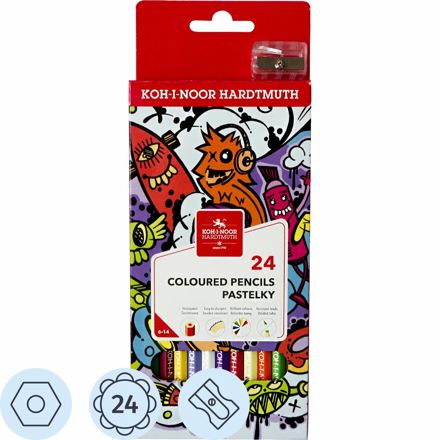 Карандаши цветные Koh-I-Noor "Teenage", 24цв., заточен., картон, европодвес (арт. 327302)