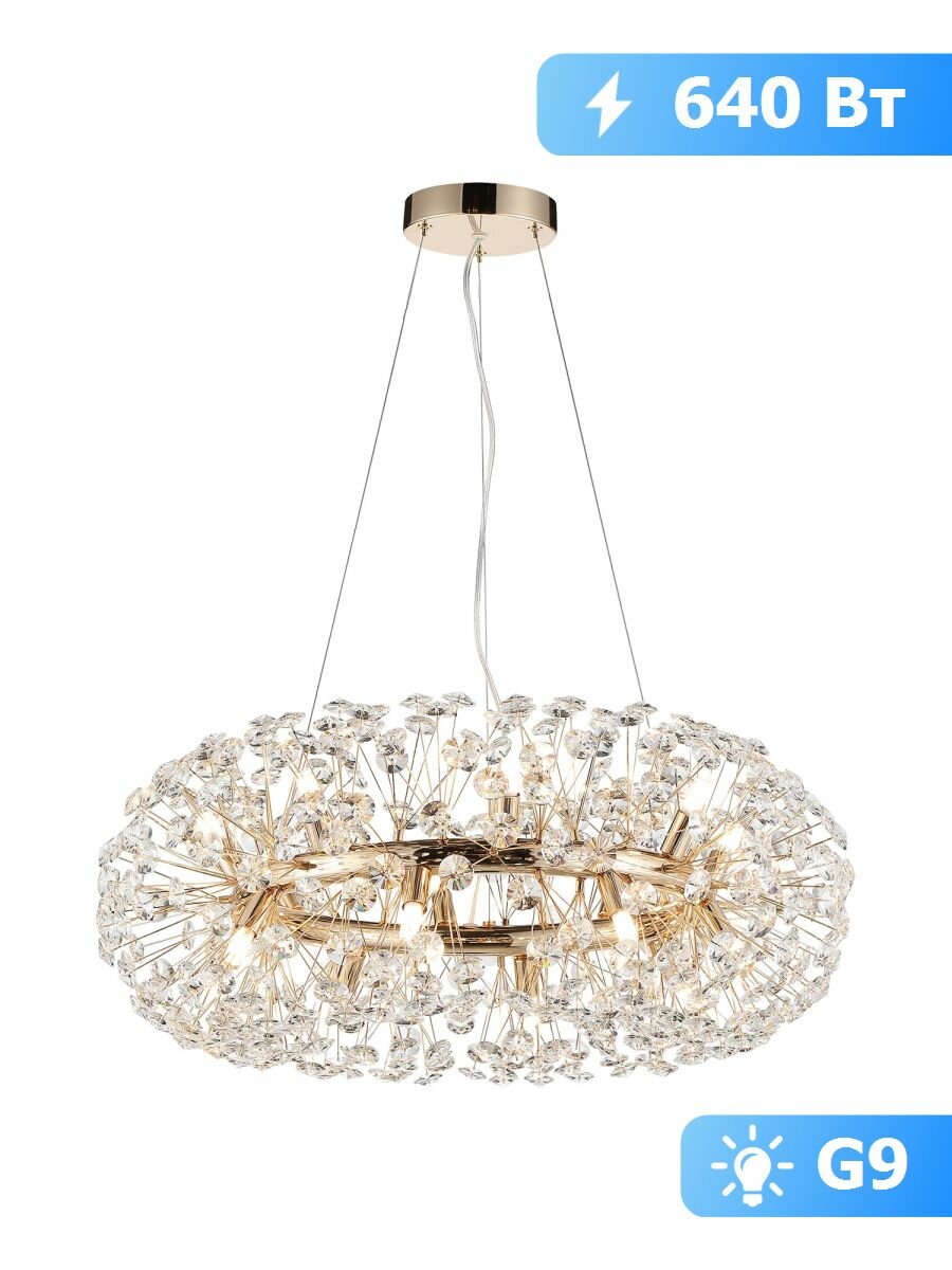 Подвесная хрустальная люстра Alaska Lussole GRLSP-8340, G9, 80Вт, кол-во ламп:16шт., Золото 51 013 ₽