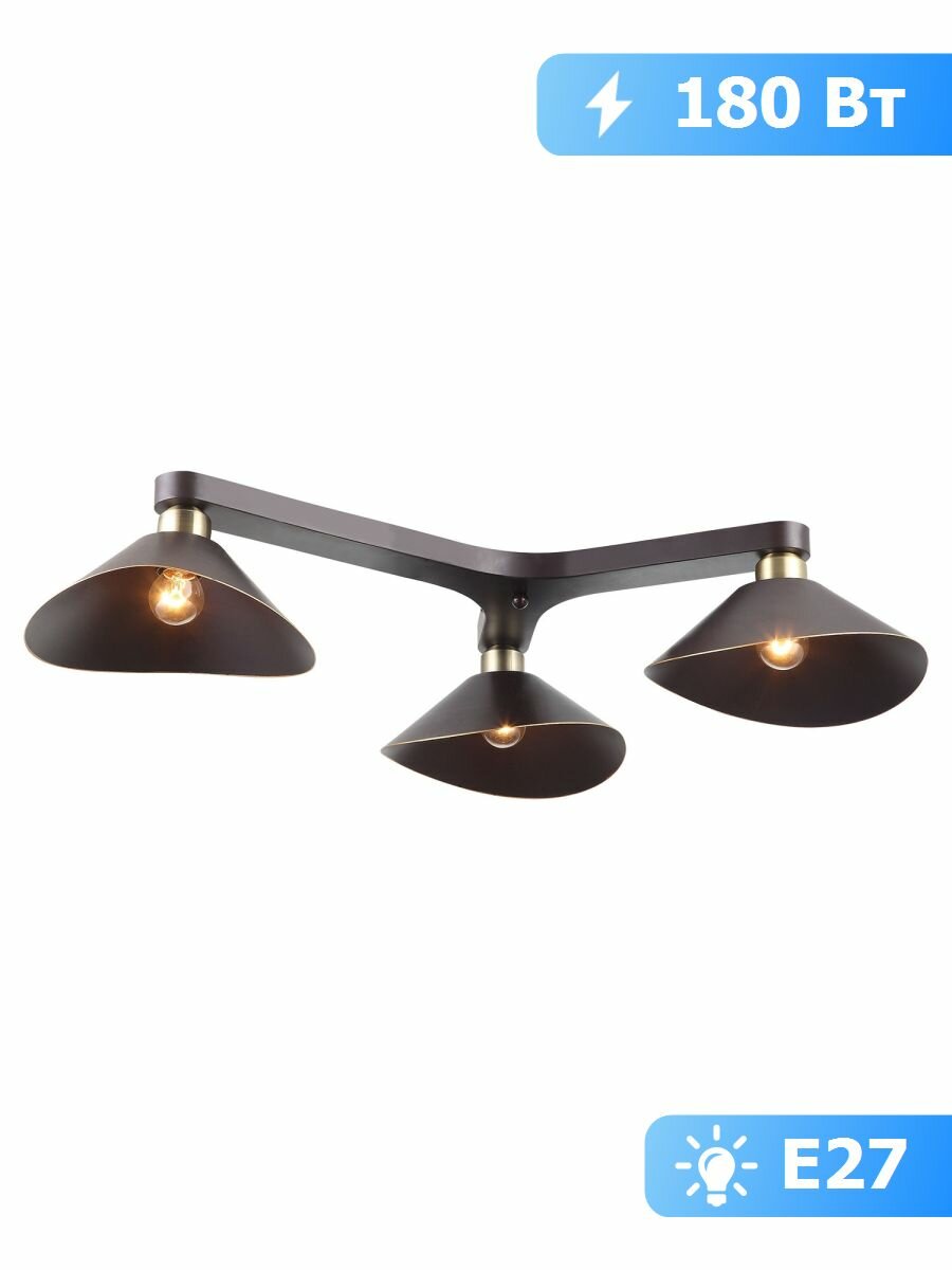 13 596 ₽ Потолочная люстра Lussole LOFT Opelika LSP-9534, E27, Вт., кол-во ламп:3шт., Коричневый