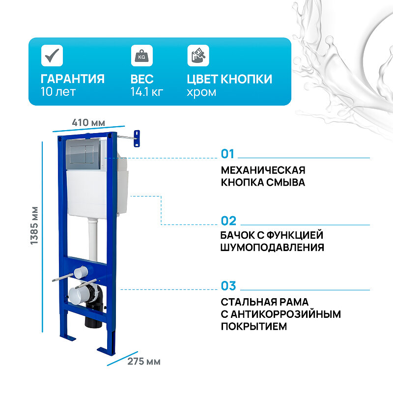 Инсталляция для подвесного унитаза BERGES атом 410 с клавишей хром глянец 040331 11 696 ₽
