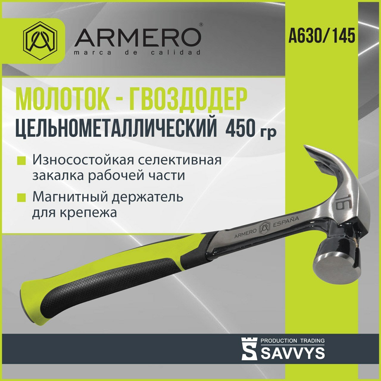 Молоток - гвоздодер цельнометаллический ARMERO 450г A630/145 информация: