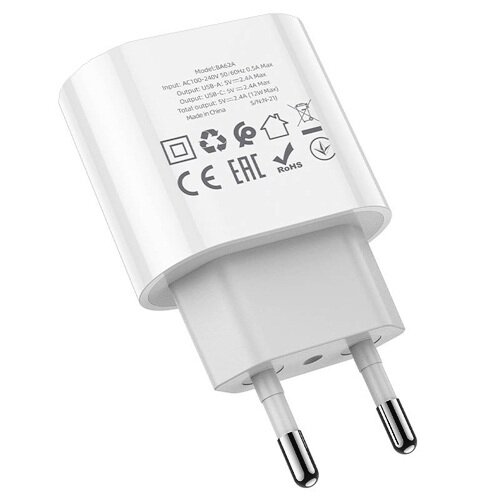 Сетевое зарядное устройство BOROFONE BA62A Wiseacre 1xUSB + USB-C, 2,4A (белый)