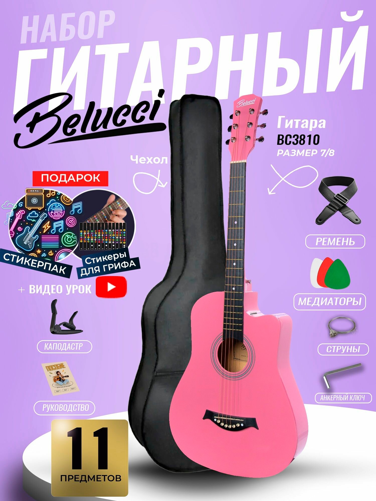 Гитара акустическая 38" Розовая (Набор начинающего гитариста, Belucci BC3810 PI) информация: