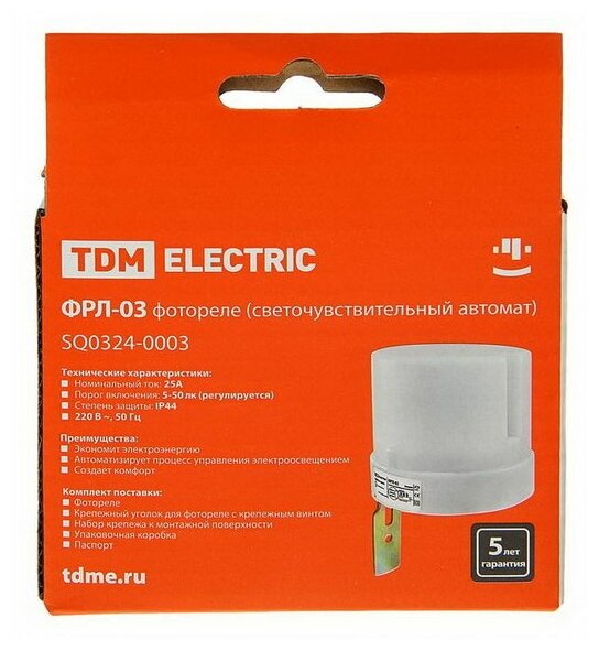 Отзывы на Фотореле TDM ELECTRIC ФРЛ-03, белый, термопласт, IP44, выносной датчик