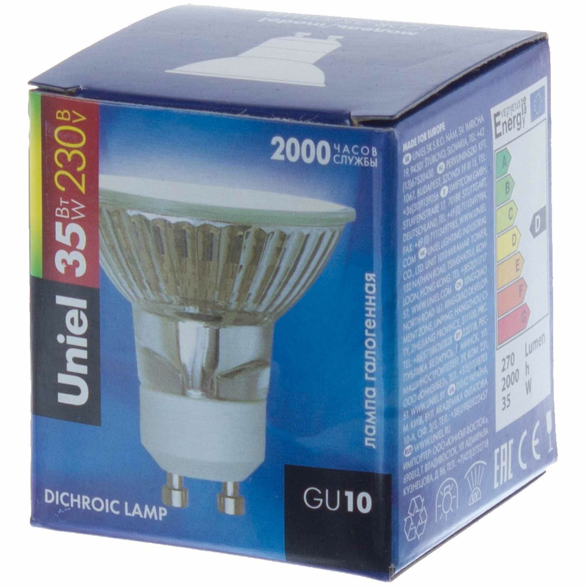 10 цен на Лампа галогенная Uniel GU10 35 Вт 270 лм, свет тёплый белый