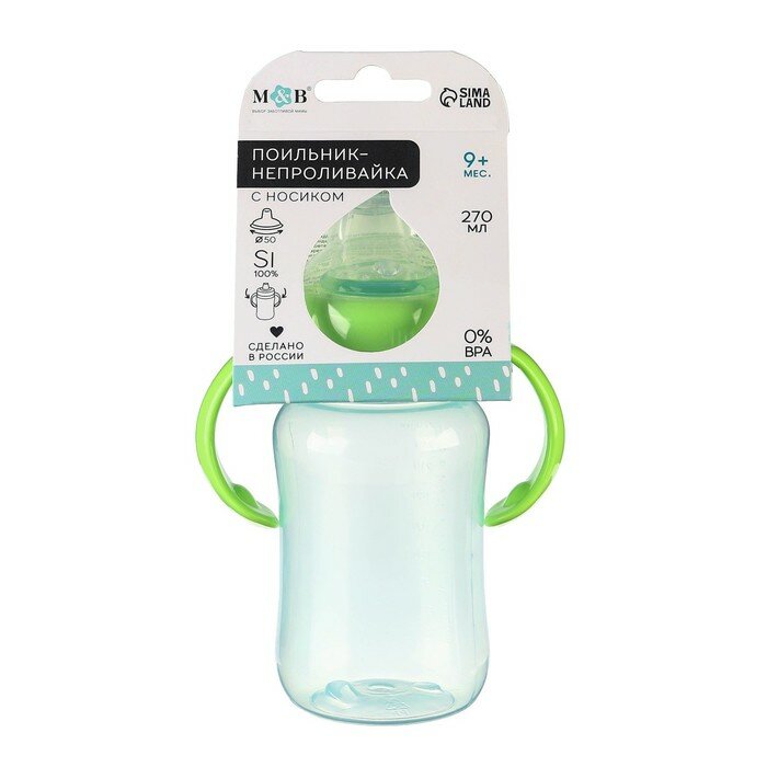 10 цен на Поильник - непроливайка детский с мягким носиком, 270 мл, с ручками, цвет зеленый/бирюзовый