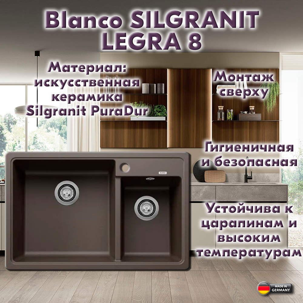 10 цен на Кухонная мойка BLANCO LEGRA 8, кофе, монтаж сверху, прямоугольная, искусственный гранит