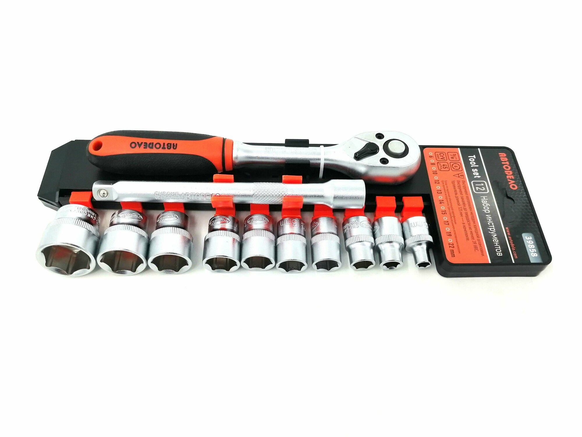 Набор головок торцевых с трещоткой 3/8", с удлинителем, от 6 до 22 мм, 12 предметов, АвтоDело 39858 1 875 ₽