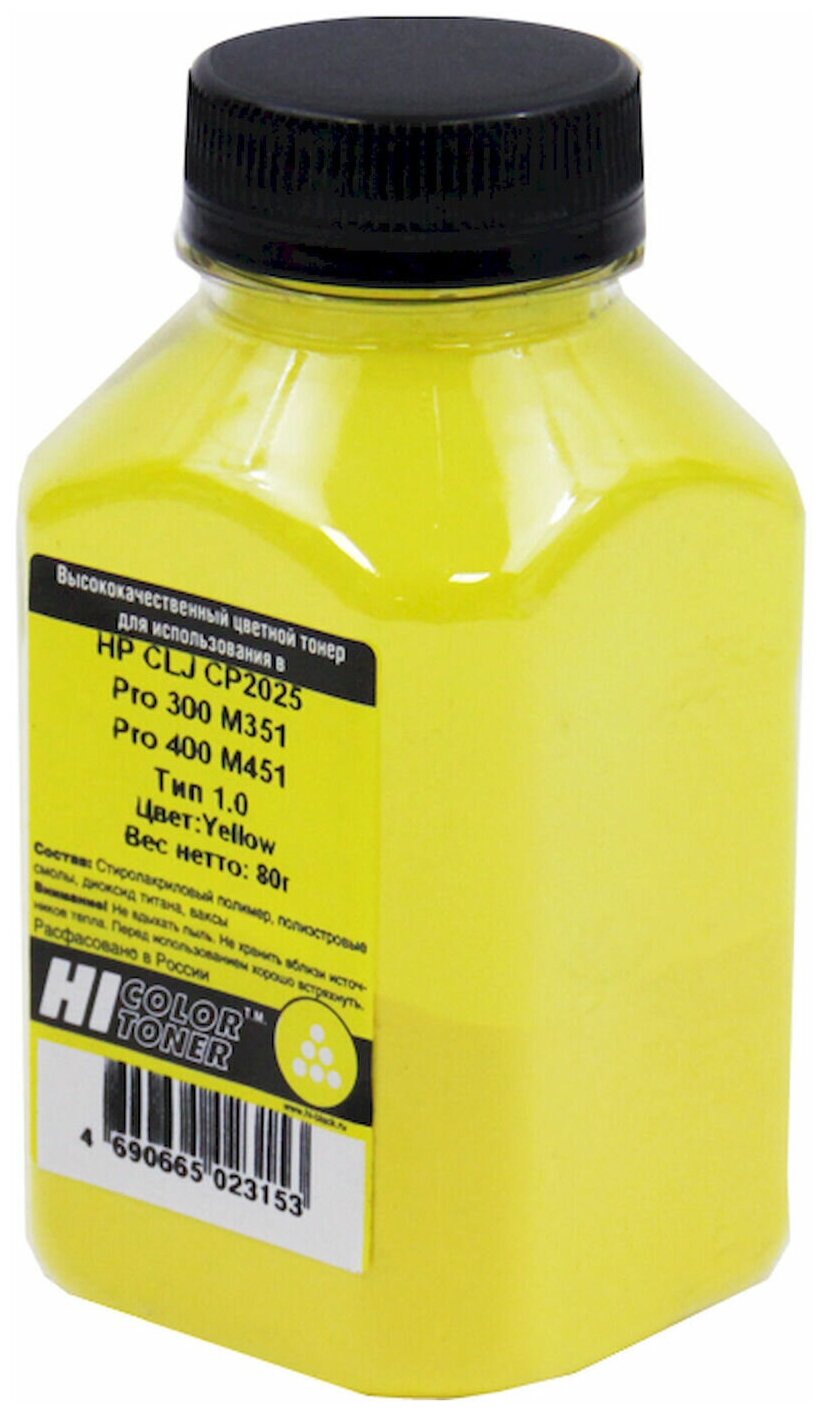 10 цен на Тонер Hi-Black для HP CLJ CP2025/Pro 300 M351/Pro 400 M451, Тип 1.0, Y, 80 г, банка CP2025