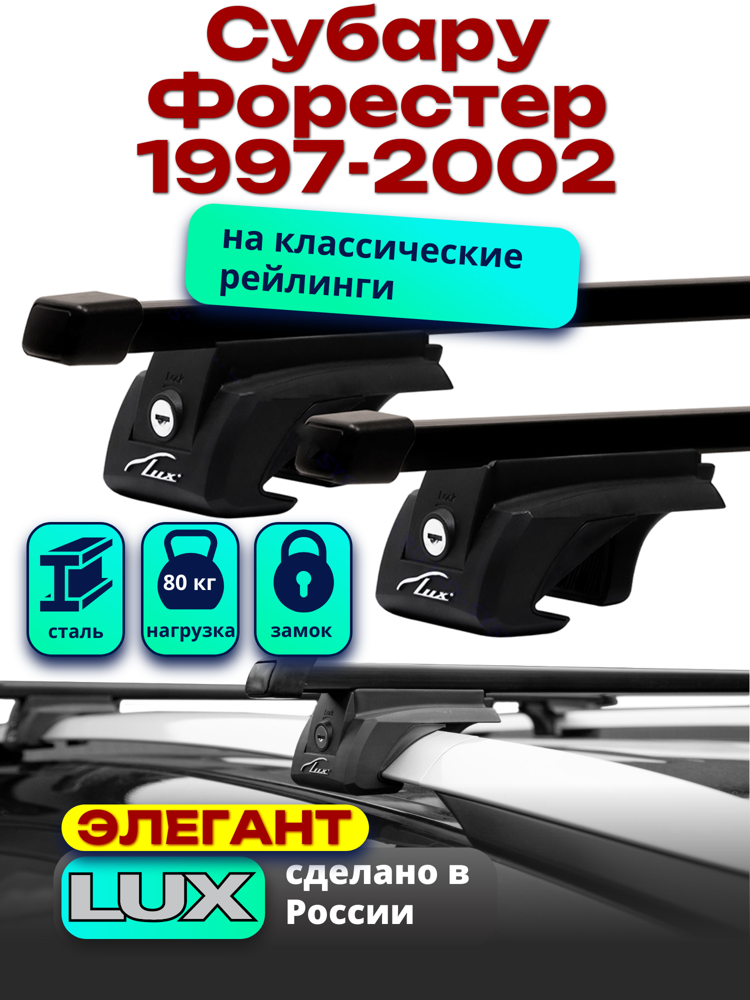 Багажник на крышу Субару Форестер 1997-2002 на рейлинги, черный, прямоугольные дуги, LUX элегант информация: