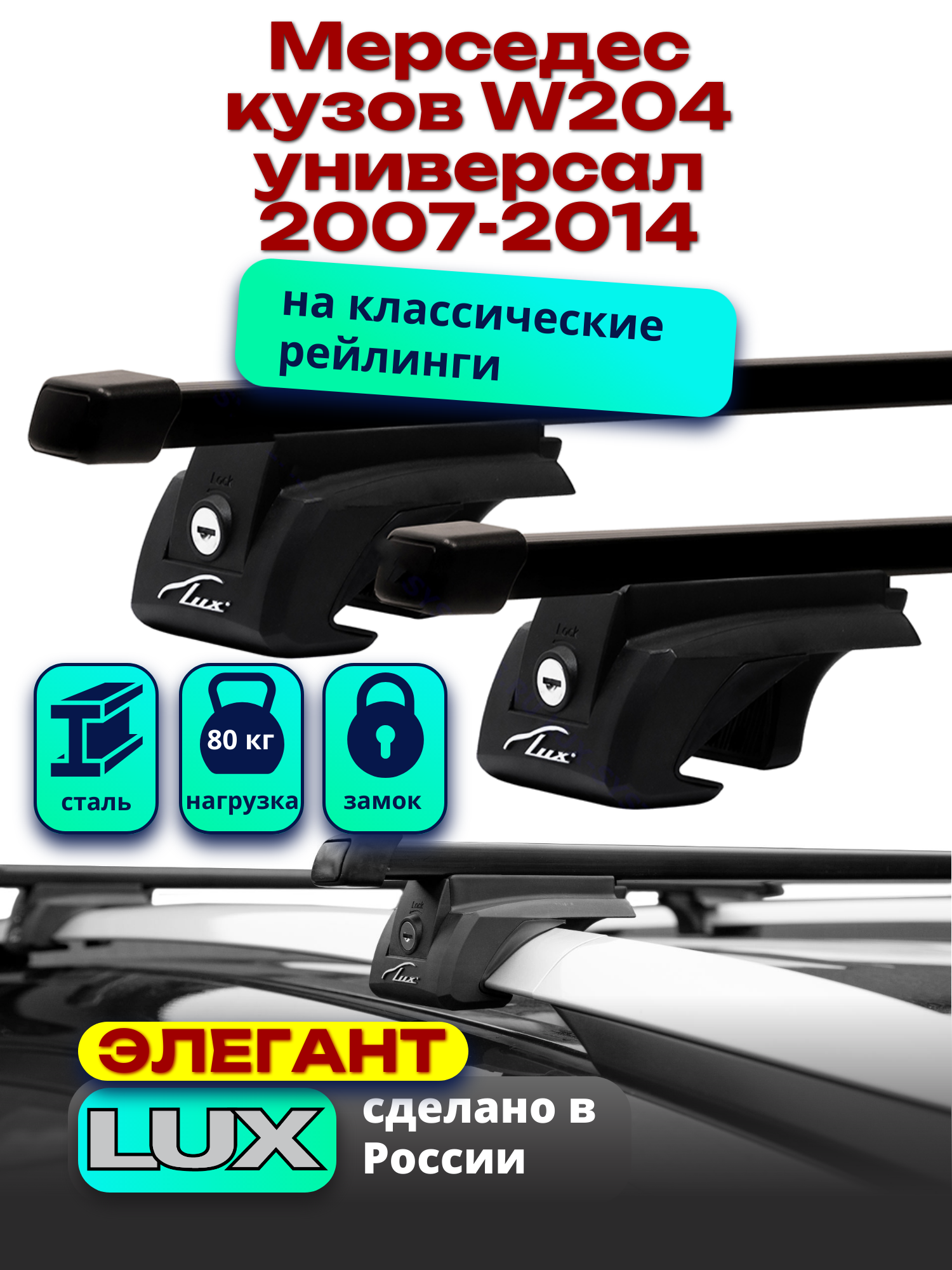 Багажник на крышу LUX элегант с замками, прямоугольные дуги 1,2м на Мерседес W204 универсал с рейлингами 2007-2014, арт:218928
