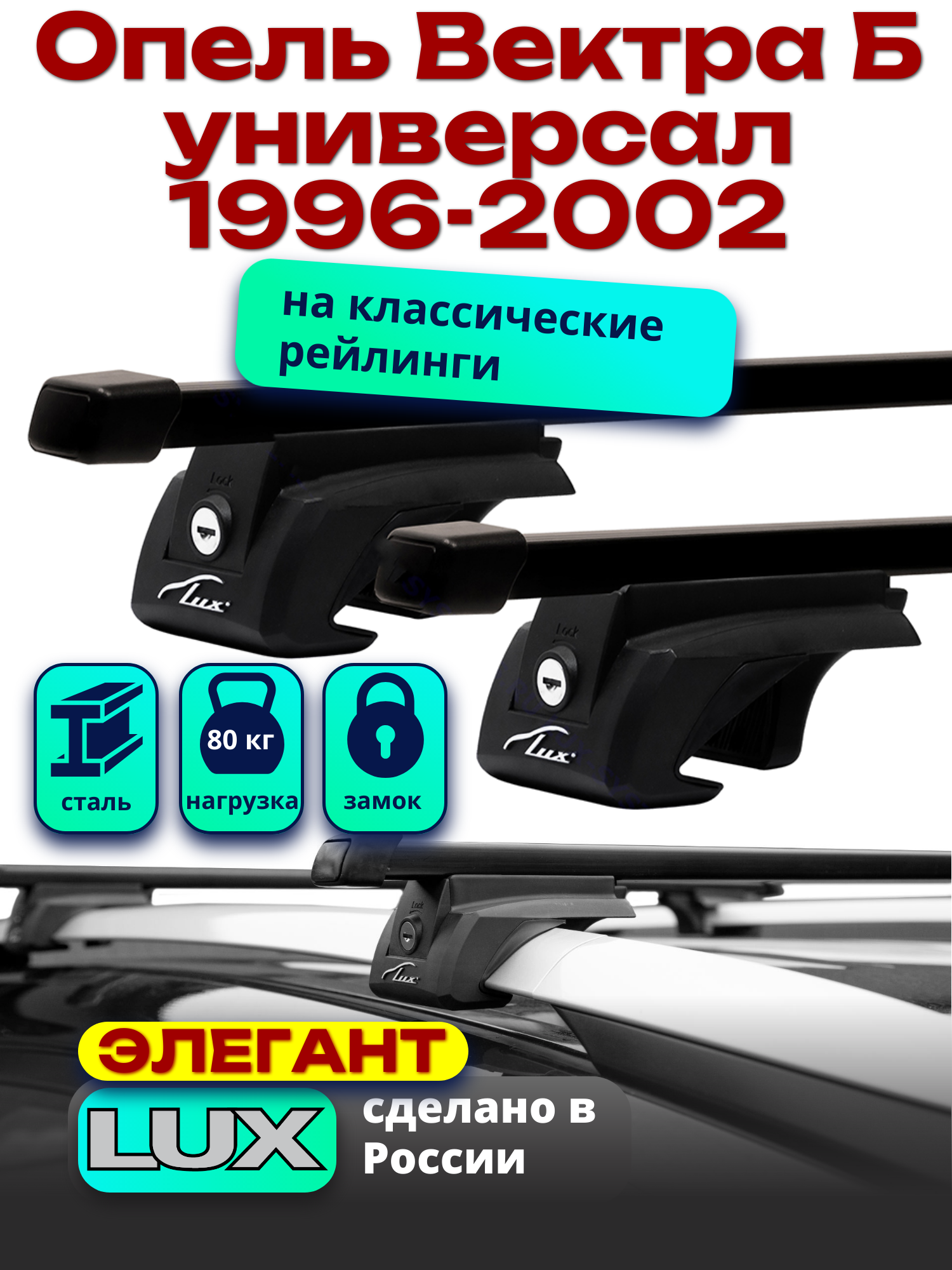 Багажник на крышу Опель Вектра Б универсал 1996-2002 на рейлинги, черный, прямоугольные дуги, LUX элегант информация: