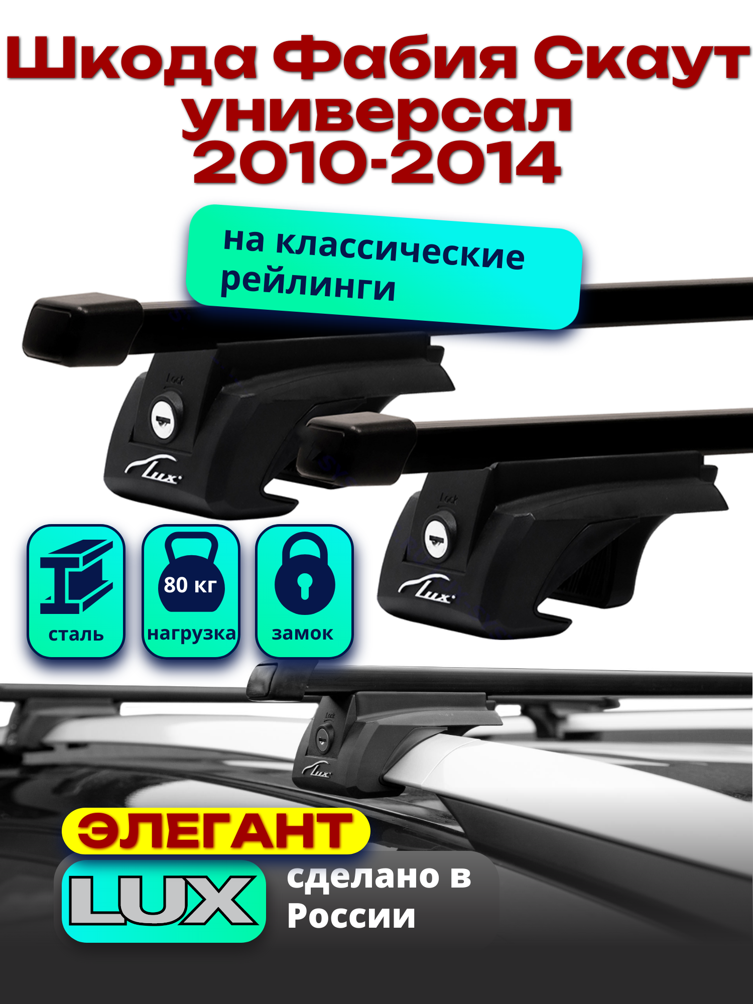 Багажник на крышу Шкода Фабия Скаут универсал 2010-2014 на рейлинги, черный, прямоугольные дуги, LUX элегант информация: