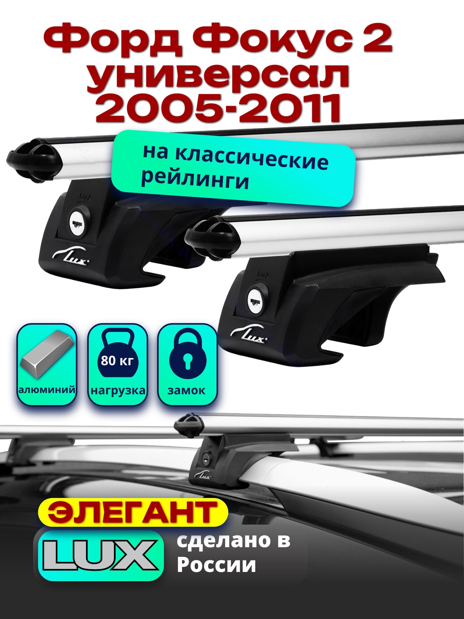 Багажник на крышу Форд Фокус 2 универсал 2005-2011 на рейлинги, дуги аэро-классик, LUX элегант информация: