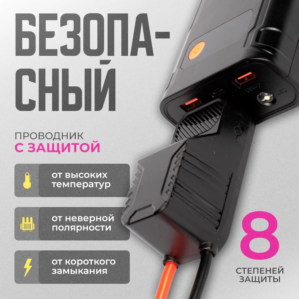 Пусковое устройство для авто, LED фонарь, черный матовый, 800 А, 18 см