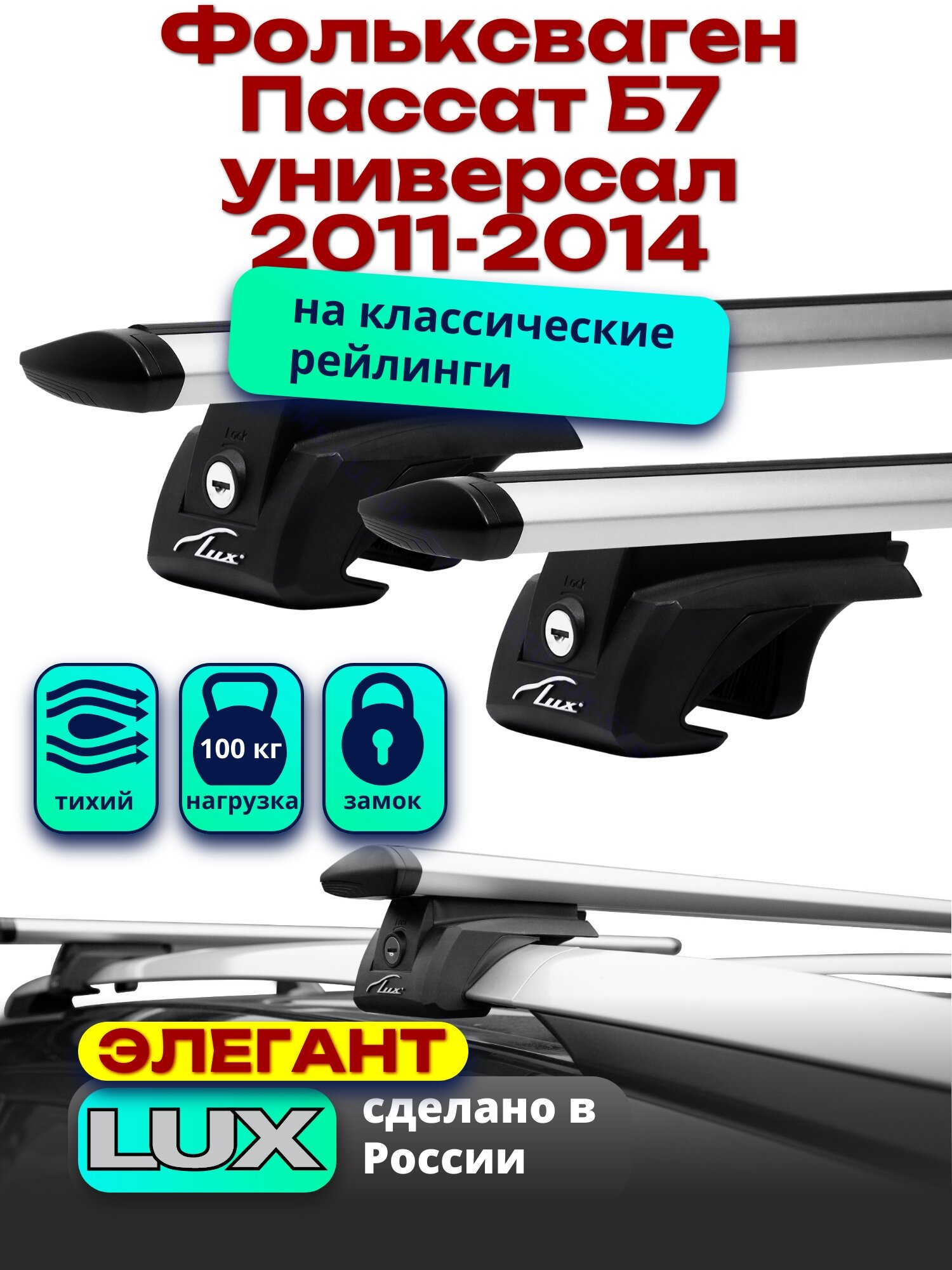 Багажник на крышу LUX элегант с замками, дуги аэро-тревел (82мм) 1,2м на Фольксваген Пассат Б7 универсал с рейлингами 2011-2014, арт:211034