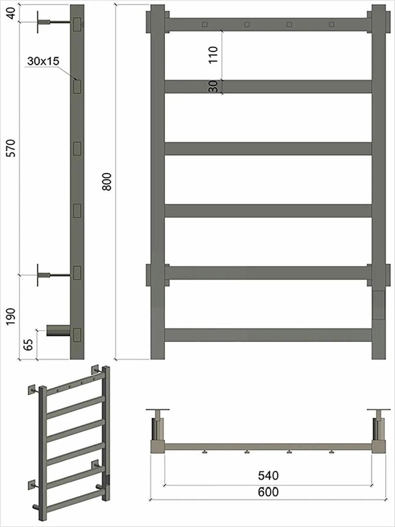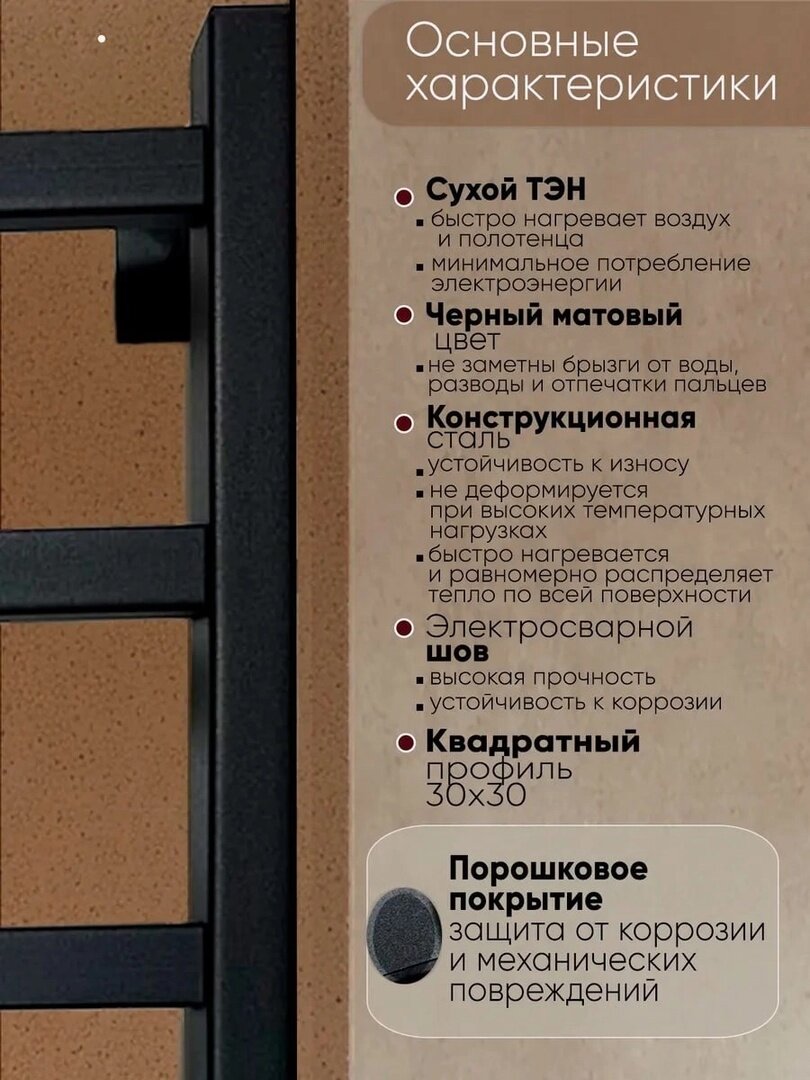 Электрический полотенцесушитель Eriknar ЧЕРНЫЙ 800 мм / 600 мм лесенка информация: