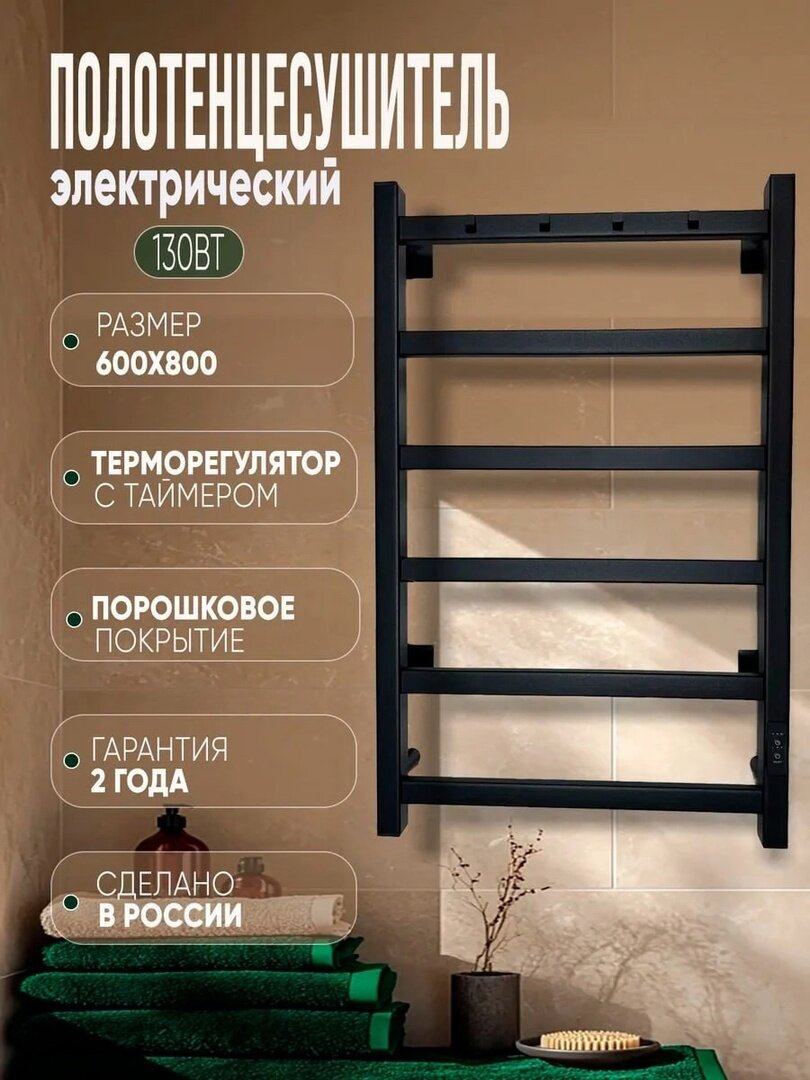 Отзывы на Электрический полотенцесушитель Eriknar ЧЕРНЫЙ 800 мм / 600 мм лесенка