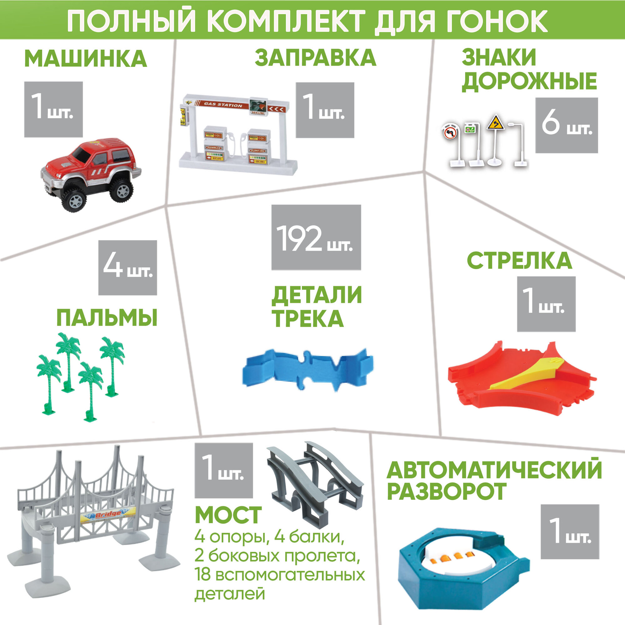 Гонки, 1Toy (трек, гараж игрушечные, 237 деталей, Т20857)