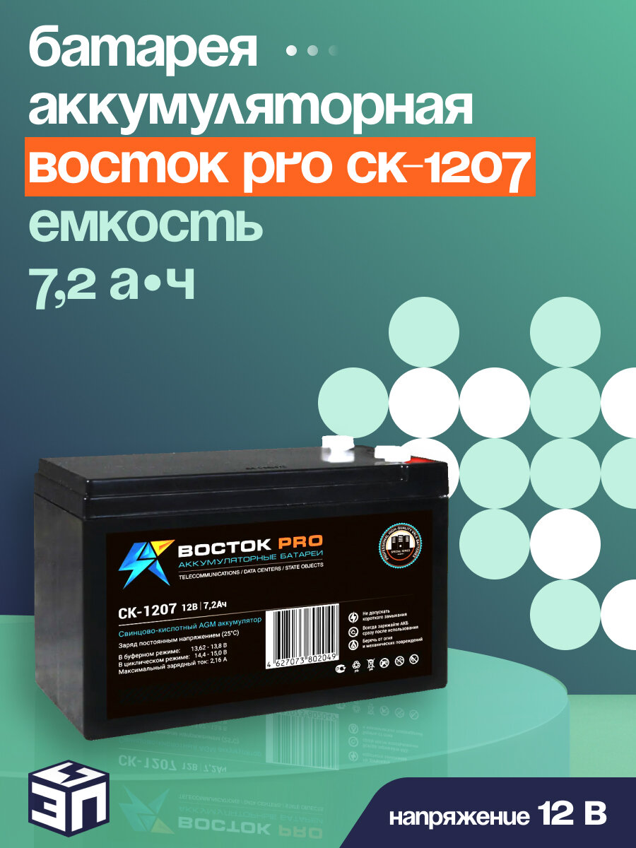 Аккумуляторная батарея Восток Pro CK-1207, 12В, 7,2Ач, черный информация: