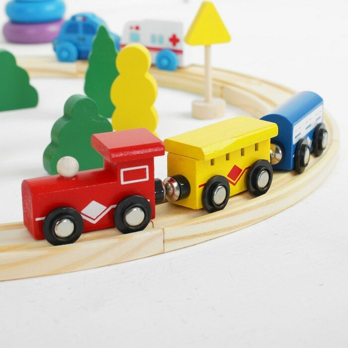| Дополнительная информация | размер дороги в собранном виде: наружный диаметр — 45 см, внутренний диаметр — 36 см, ширина рельса — 4 см |