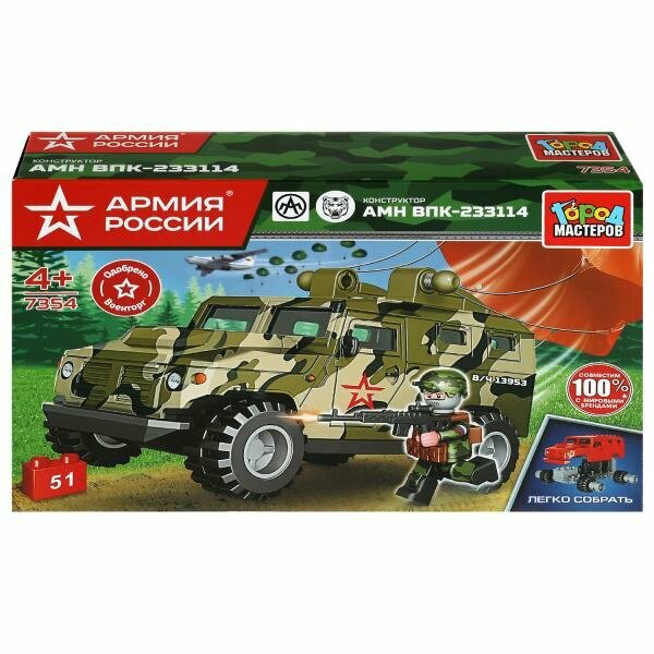 Конструктор бронемашина тигр на парашюте, 51 дет. (легко собрать) Город мастеров информация: