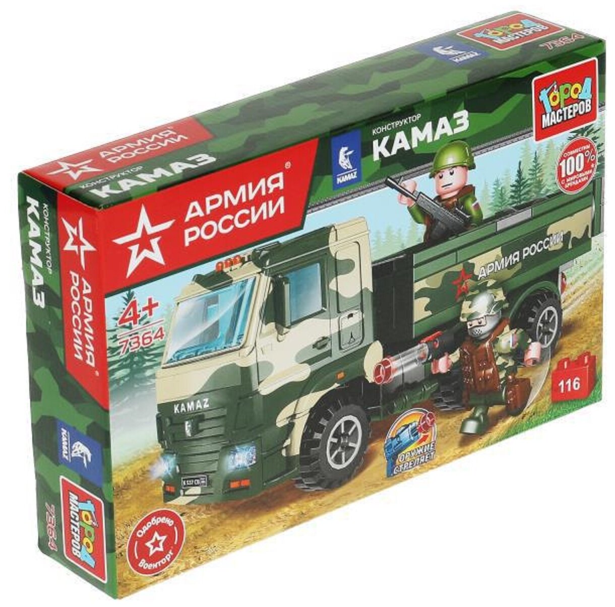 Детский конструктор ТМ "Город мастеров", 7364-KK, Армия России "Военный КАМАЗ с солдатами", 116 деталей информация: