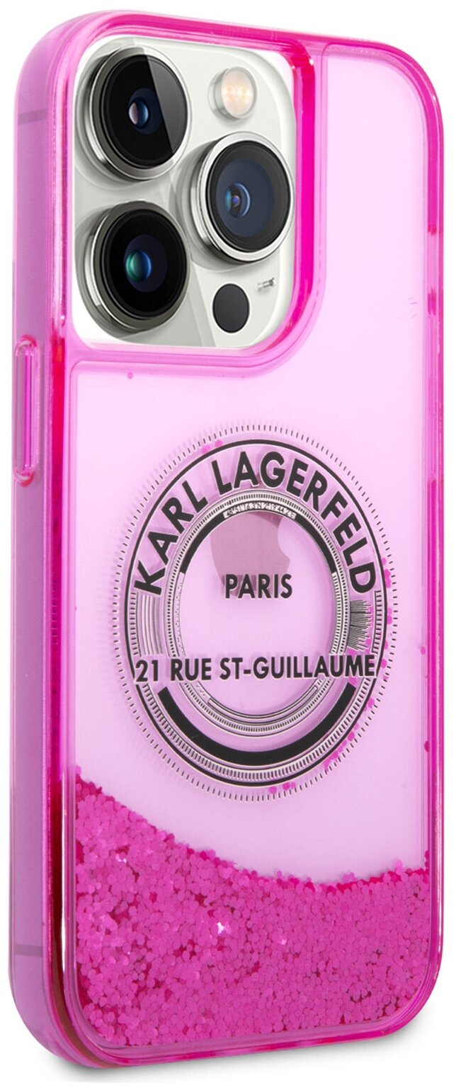 10 цен на Lagerfeld для iPhone 14 Pro Max чехол Liquid glitter RSG Round logo Hard Pink