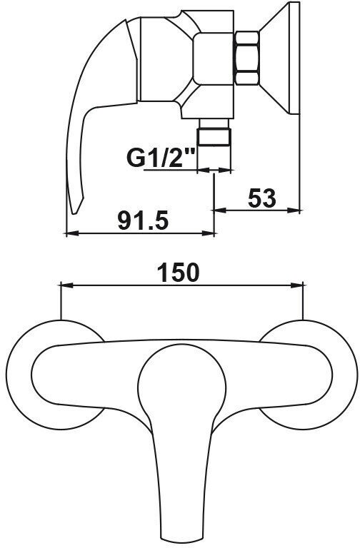 Смеситель на раковину настенный Эверест B46-350 с круглым поворотным изливом, кран-буксы 1/2", хром