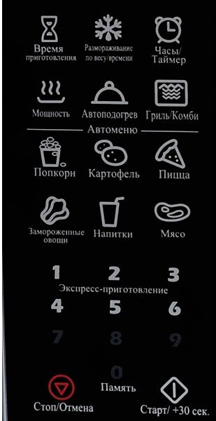| Дополнительные режимы | автоматическая разморозка / автоматический разогрев / автоматическое приготовление / звуковой сигнал отключения / экспресс-режим приготовления |