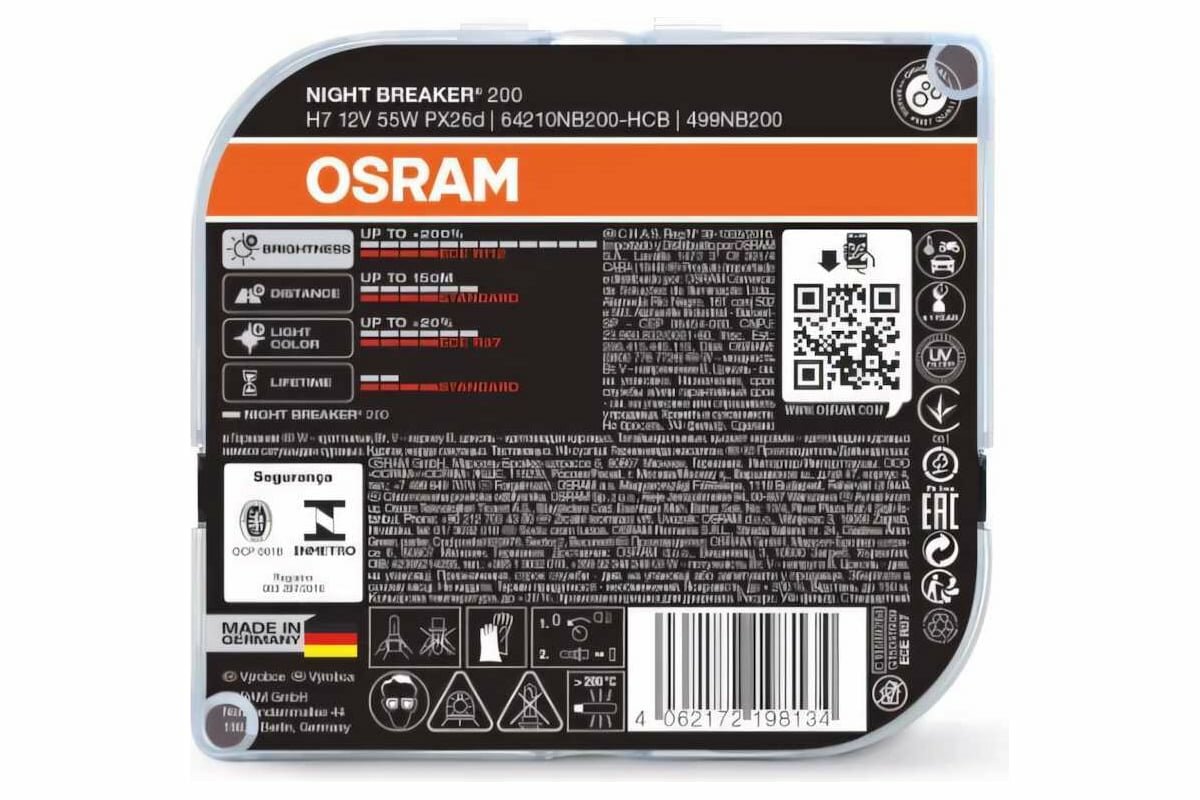 64210NB200HCB OSRAM Комплект ламп H7 12V 55W PX26d 3700K NIGHT BREAKER200 +200% 2 шт