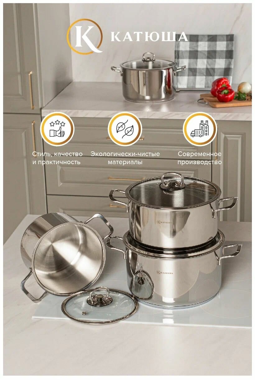 Кастрюля Катюша Марта, нержавеющая сталь, со стеклянной крышкой, 8,3 л, 26 см