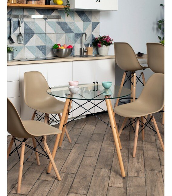 Стол круглый обеденный DSW D80, стеклянный, на деревянных ножках