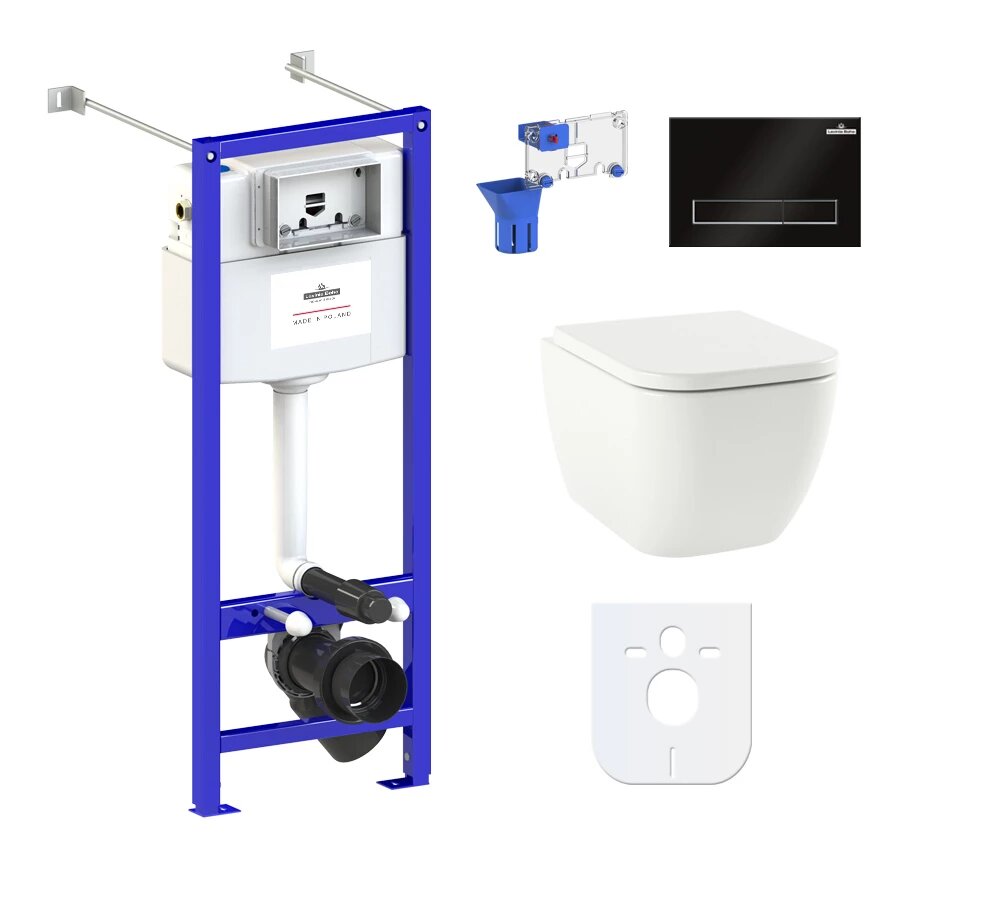 Подвесной унитаз комплект 7 в 1 Lavinia Boho One Rimless 87050160: унитаз, сиденье микролифт, инсталляция, кнопка, шумоизоляция, диспенсер