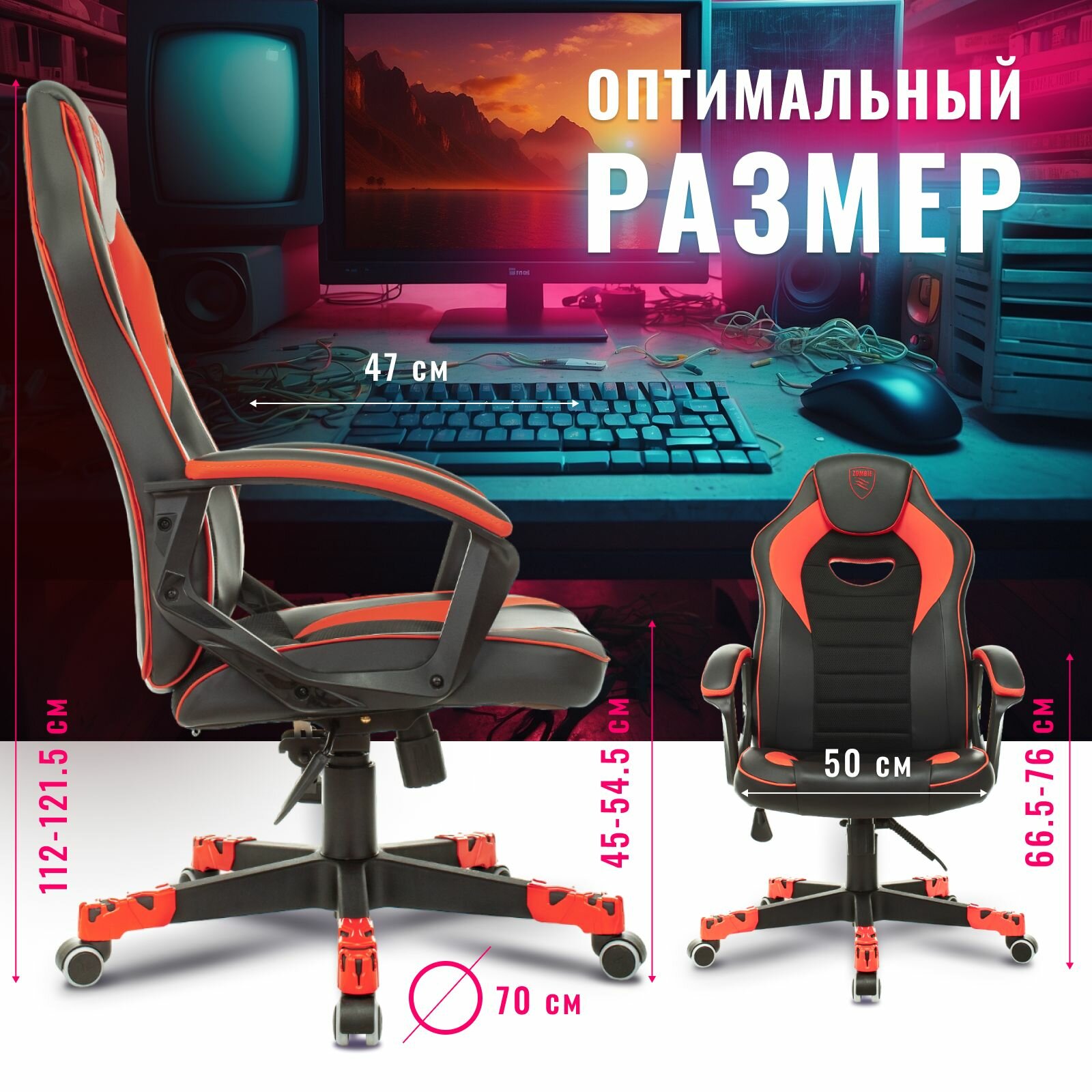 Кресло Бюрократ Zombie GAME 16 игровое, крестовина пластик, текстиль/эко.кожа , цвет: черный/оранжевый