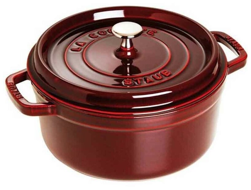 Кокот круглый Staub 2.2 л, 29 см, гранатовый с крышкой информация: