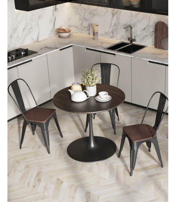 Стул обеденный Stool Group TOLIX черный глянцевый + темное дерево 7 225 ₽
