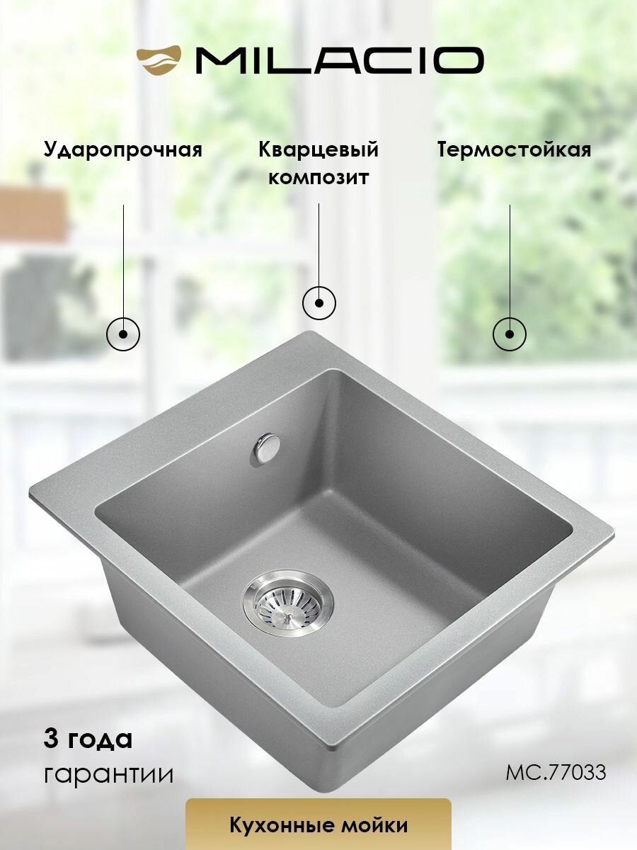 10 цен на Мойка для кухни каменная, кварцевая MILACIO Murcia 46 (MC.77033), цвет серый металлик