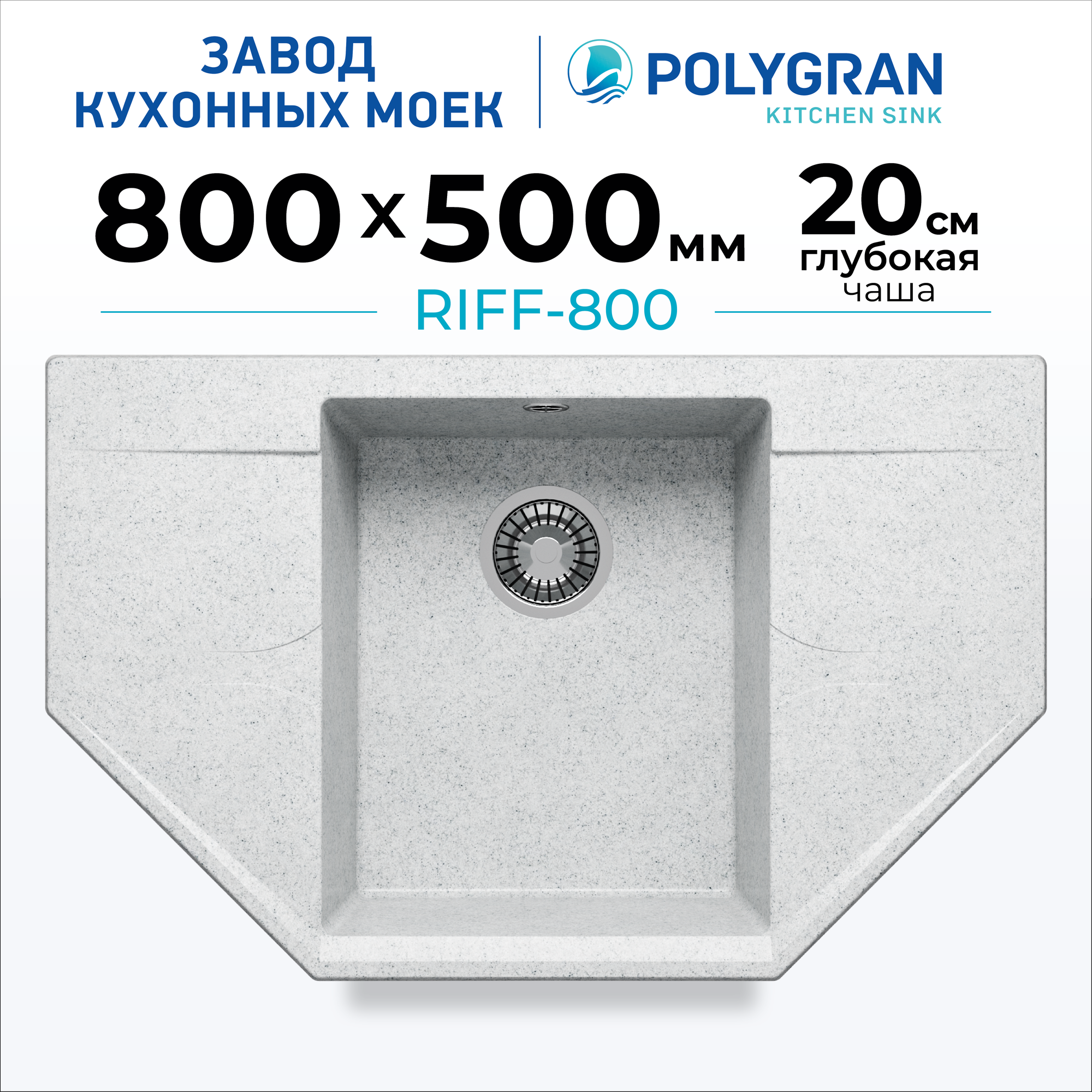 10 цен на Мойка для кухни каменная POLYGRAN Riff-800, белая, врезная, с крылом (№314 Светло-серый)