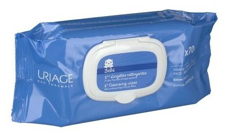 Влажные салфетки Uriage Первые Очищающие Салфетки, пластиковая крышка, 70 шт.