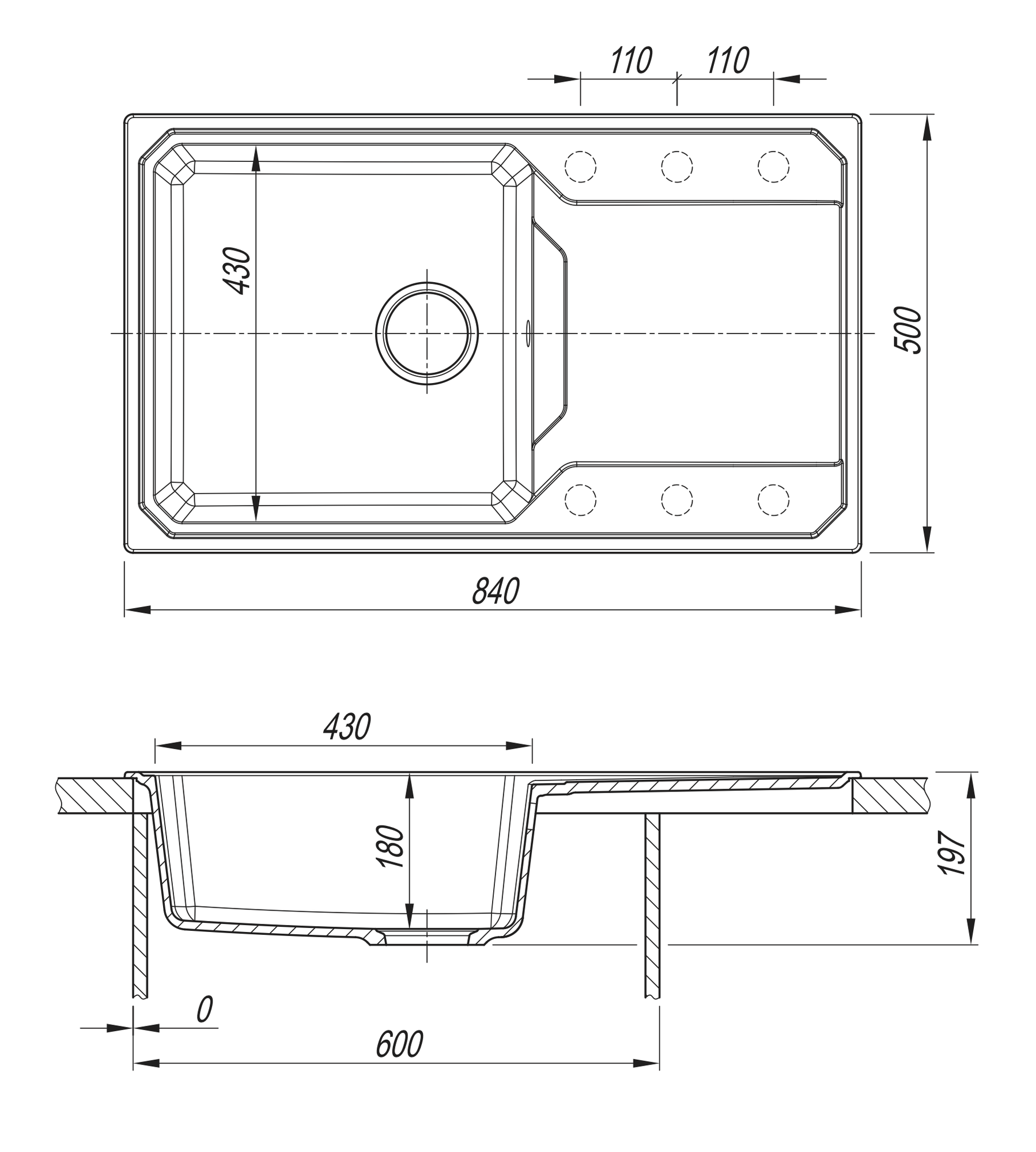 | Особенности | клапан-автомат / отверстие под смеситель / сливная арматура |