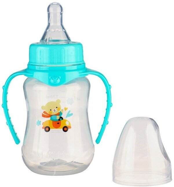 Бутылочка для кормления Mum&Baby "Мишутка", классическое горло, приталенная, с ручками, 150 мл, от 0 мес, цвет бирюзовый (150 мл., Приталенная - ручки|рисунок)