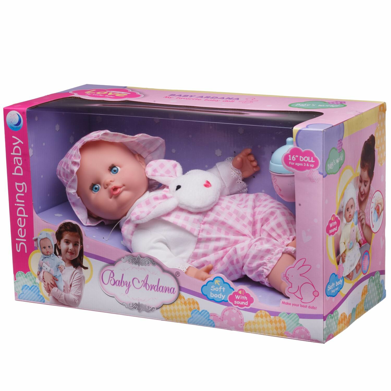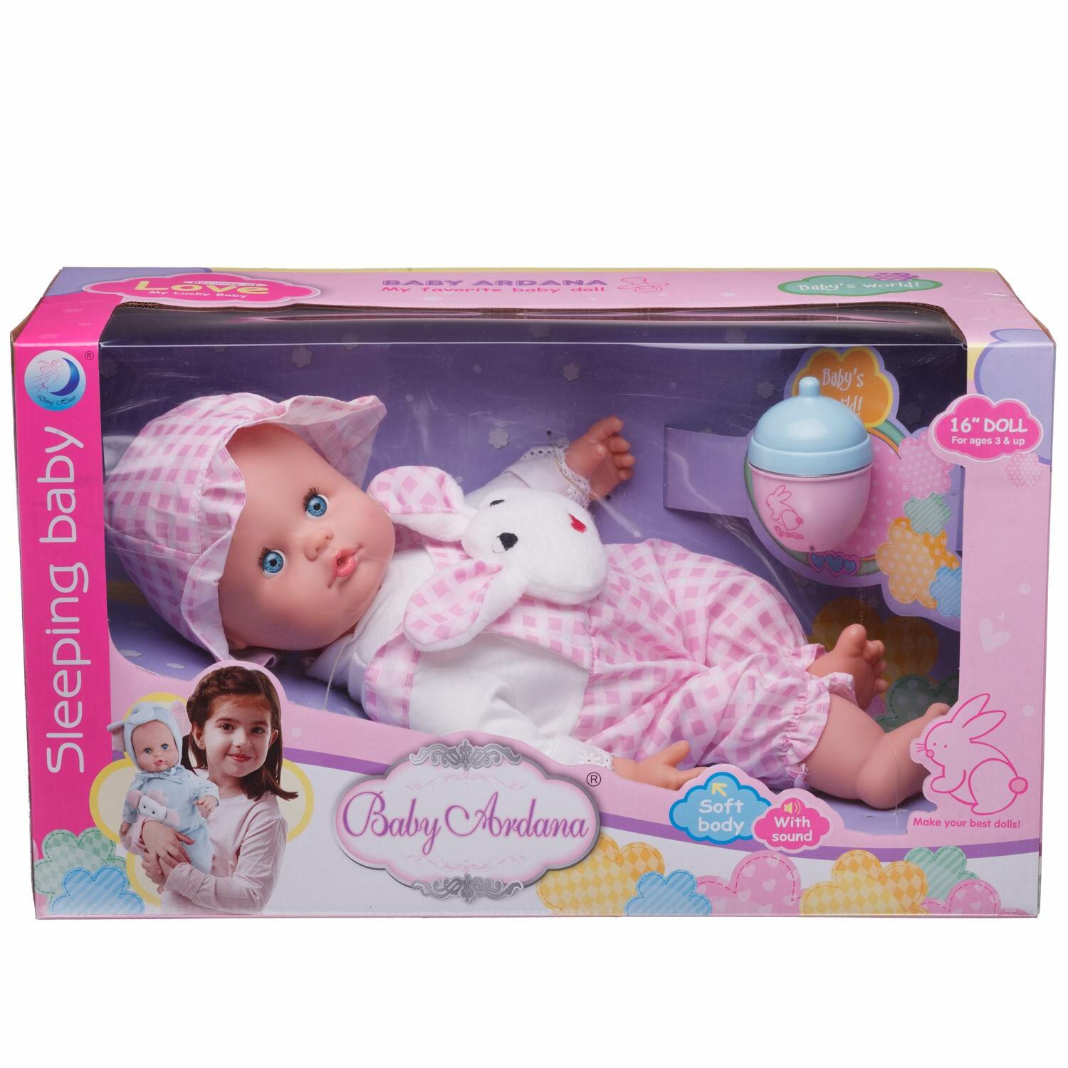 Отзывы на Пупс ABtoys Baby Ardana 40см в конбинезоне "Зайчик" с бутылочкой в коробке WJ-B8776