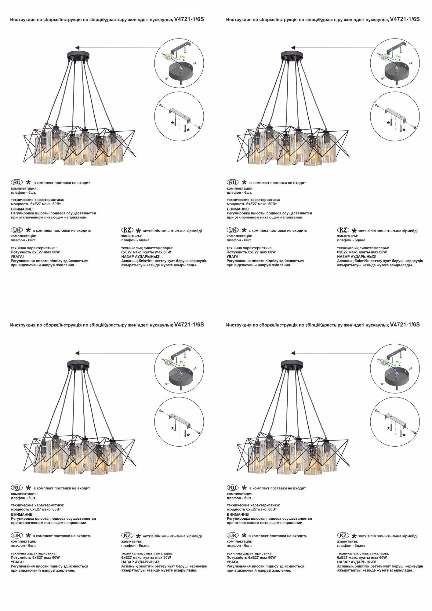 Люстра V4721-1/6S, 6хE27 макс. 60Вт 17 290 ₽